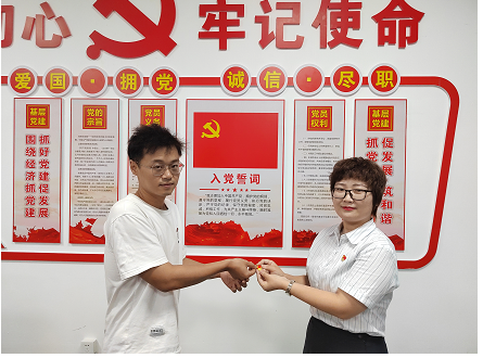 最后,全体党员同志面对鲜红的党旗,举起右拳、重温入党誓词:“我志愿加入中国共产党,拥护党的纲领,遵守党的章程......永不叛党”。宣誓结束后,党支部书记崔美霜为党员颁发党徽,并要求全体党员“戴党徽、亮身份、扛责任、做表率”,在今后的工作中,一定要不忘初心,牢记使命,立足自身岗位,爱岗敬业、奋发进取、征优创优,为西甲体育「中国」官方网站的发展做出新的贡献,也为祖国的建设增砖添瓦。
