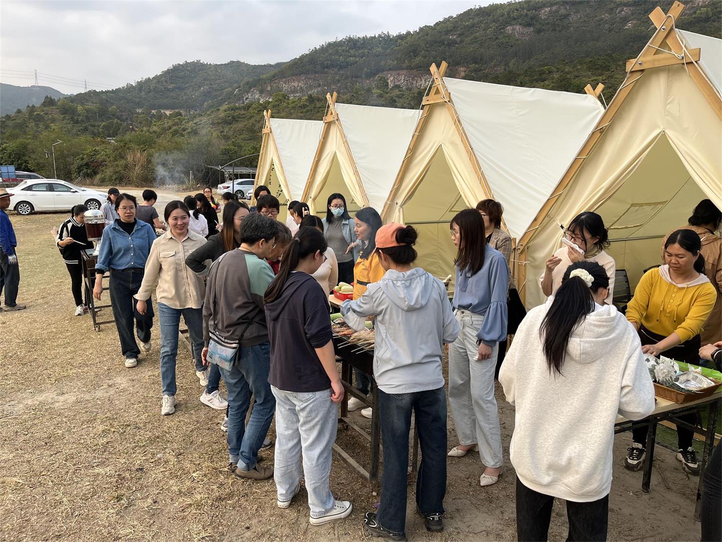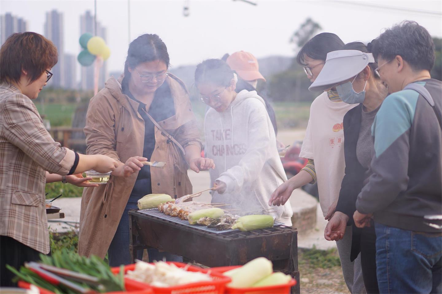 通过精彩的节目表演和形式多样的娱乐节目,以及各项刺激有趣的山地车项目活动,有的进到小番茄菜地里,体验着采摘的乐趣。整个园区中,时不时传出一阵阵的欢声笑语,平日里由工作带来的疲劳也在这一刻被一扫而空。经过近一小时的娱乐活动,大家都满载而归收获满满。随后,大家开始准备进入烧烤环节。