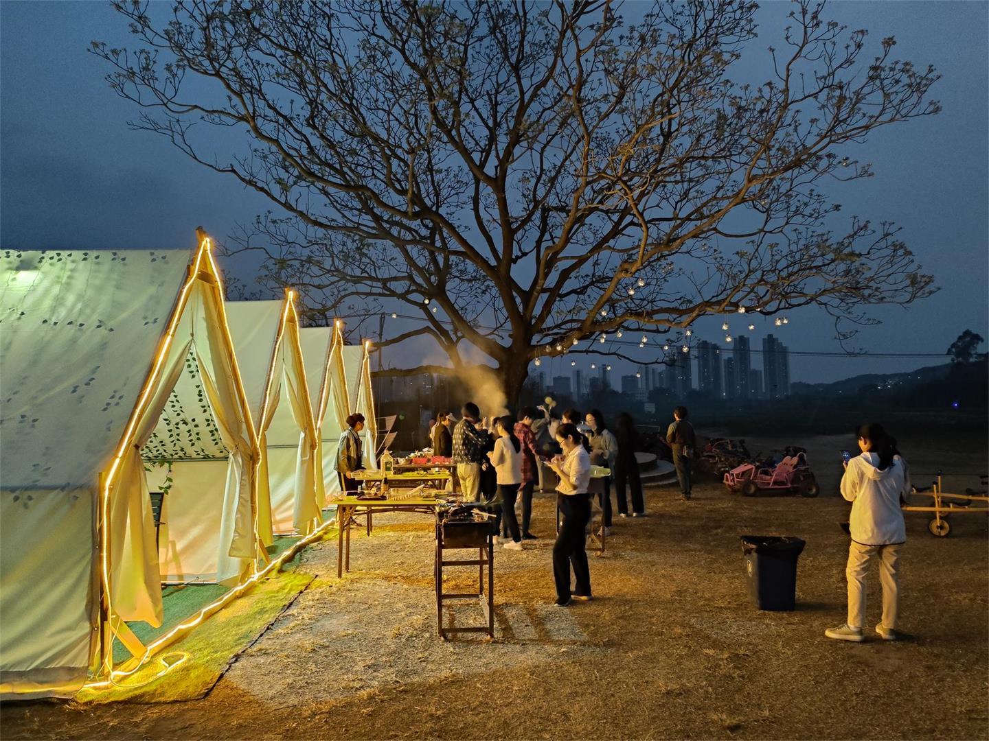 在烧烤活动现场,大家分工合作,有的人尽情展现着自己的拿手烤艺,有的人负责刷油加料,有的人负责大快朵颐,现场欢声笑语,美食飘香。大家身处在大自然的怀抱里,呼吸着清新的空气,品尝着美味佳肴。